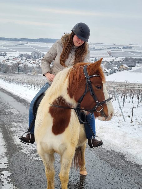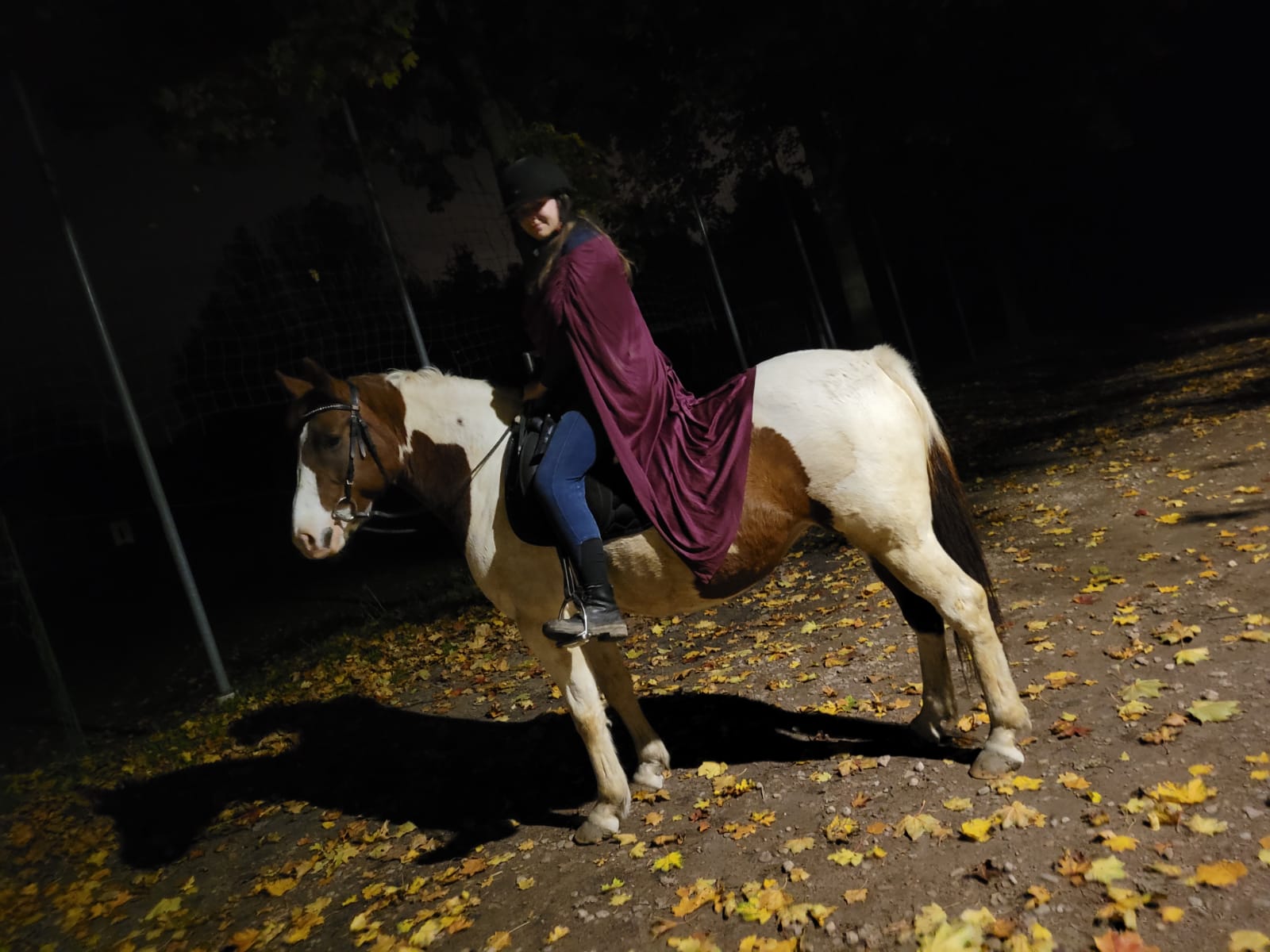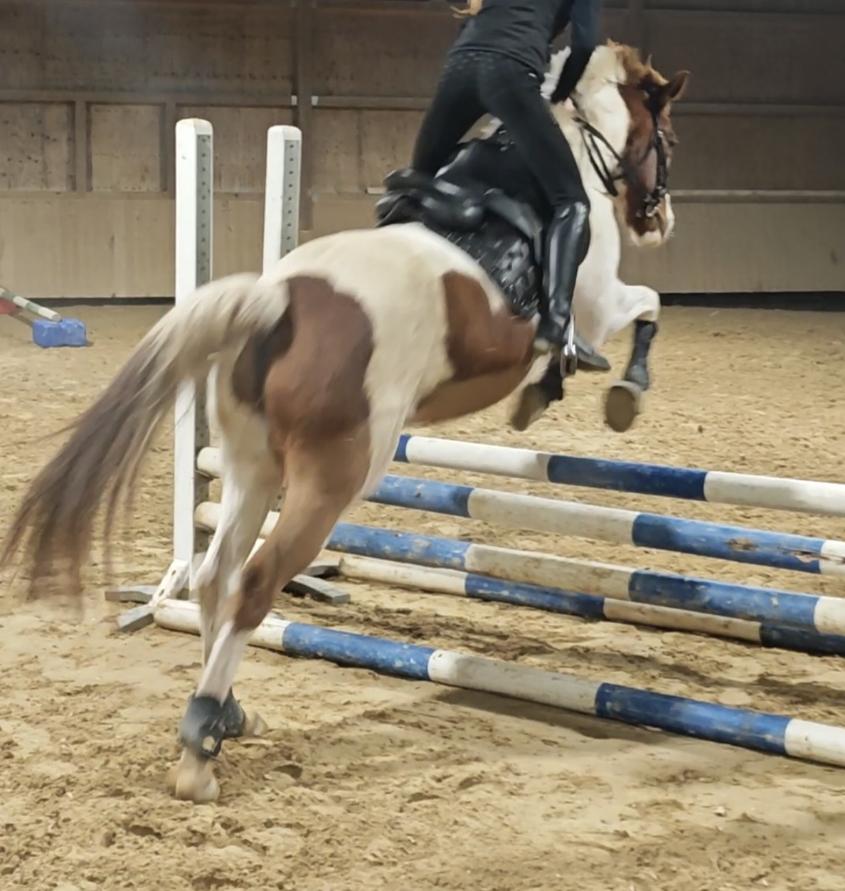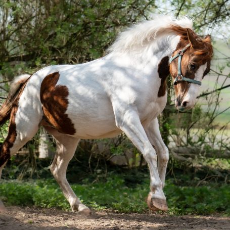 Ghana kam im Januar 2019 als 2,5 Jährige zu mir. Ich habe sie selber ausgebildet. Sie ist eine spannende Mischung aus Lewitzer und Apaloosa-Tinker-Mix. Ghana wurde western und englisch geritten. Sie konnte auch recht gut springen. Sie war auch schon als St.Martins Pferd unterwegs.