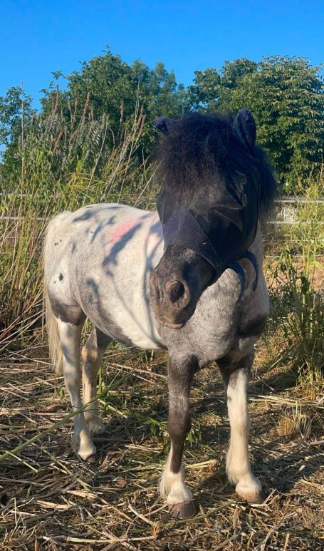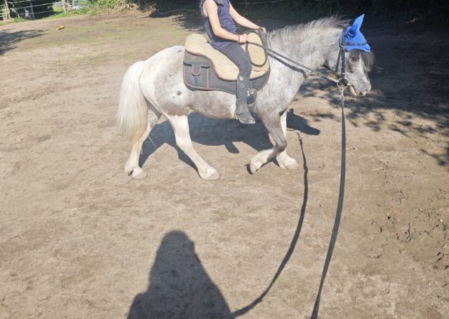 Charly ist ein interessant gefärbter Shettywallach. Er ist super lieb zu Kindern und einfach nicht mehr wegzudenken. In den Reitstunden wird er aktuell am Meisten eingesetzt. Er ist bei unerfahren Kindern sehr ruhig und entspannt. Im Gelände kann er auch mal gasgeben, wenn man ihn dazu auffordert. Aktuell lernt er das Kutschenziehen, was er auch total gelassen mitmacht.